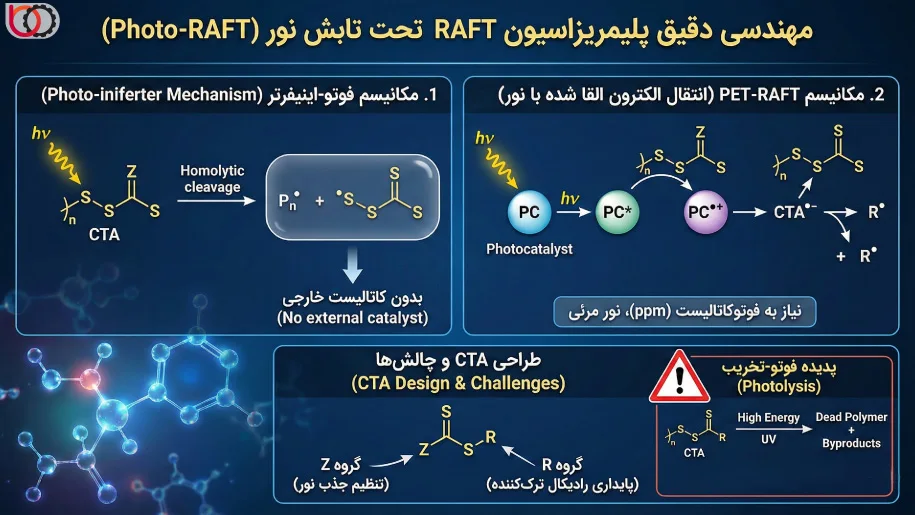 مهندسی دقیق پلیمریزاسیون RAFT تحت تابش نور (Photo-RAFT)